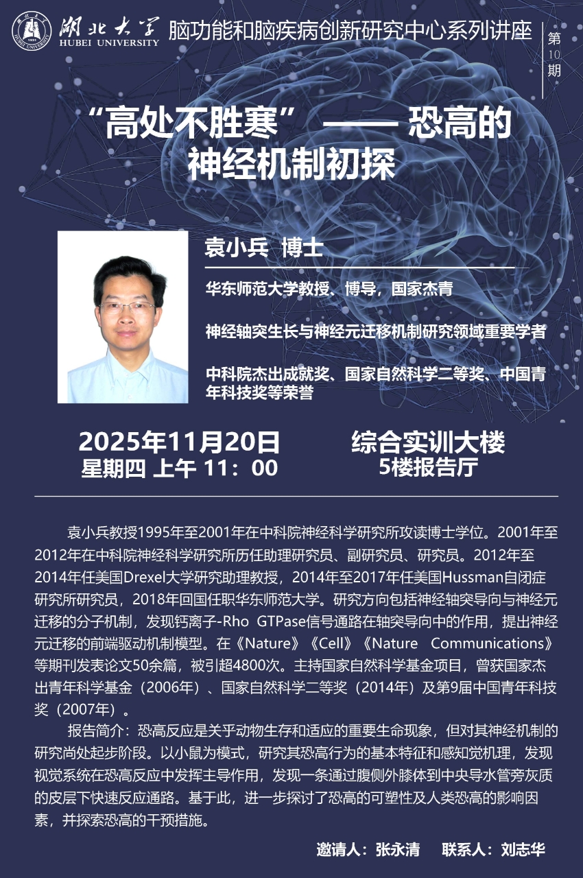 “高处不胜寒”——恐高的神经机制初探——袁小兵教授