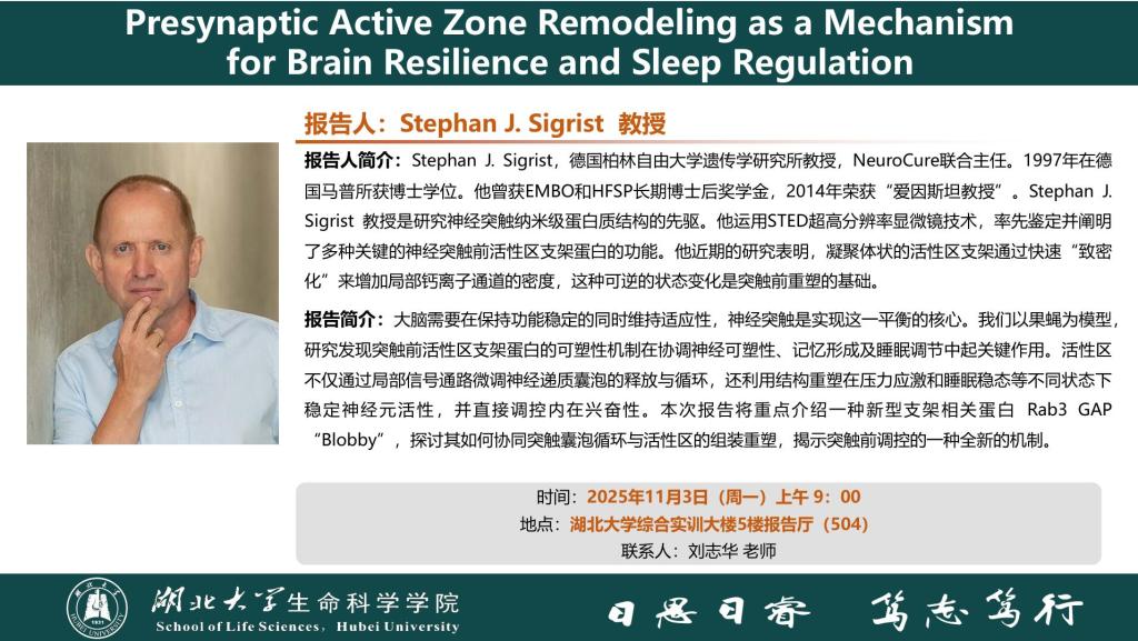 Presynaptic Active Zone Remodeling as a Mechanism for Brain Resilience and Sleep Regulation ——Stephan J. Sigrist教授